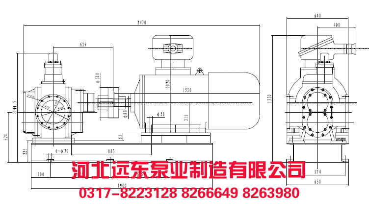 KCB3800齒輪泵安裝尺寸圖:流量228m3/h(3800L/min)壓力:0.6Mpa,吸入真空高度2米,效率44%,口徑250,配用電機功率:Y110KW-6 |