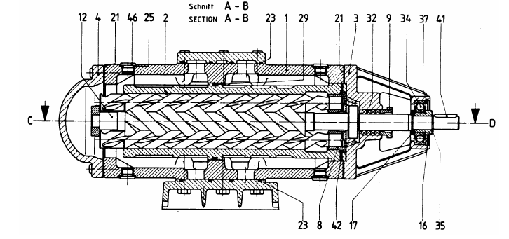 ◆U12.1結構圖 ◆E6.7結構圖(940轉速以下) ◆E6.7結構圖(940以上) ◆E15結構圖(940以下) ◆K2結構圖 ●U12.1結構圖 1.泵體 2.襯套 8.平衡套 12.主桿 13從桿 34 軸承 83 機械密封 ●SM三螺桿泵E6.7結構圖(940轉速以下) ●E6.7結構圖(940以上)