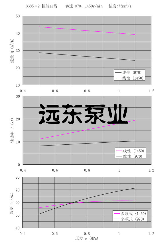 3GR85*2三螺桿泵轉(zhuǎn)速970,1450r/min,粘度75cst性能曲線圖
