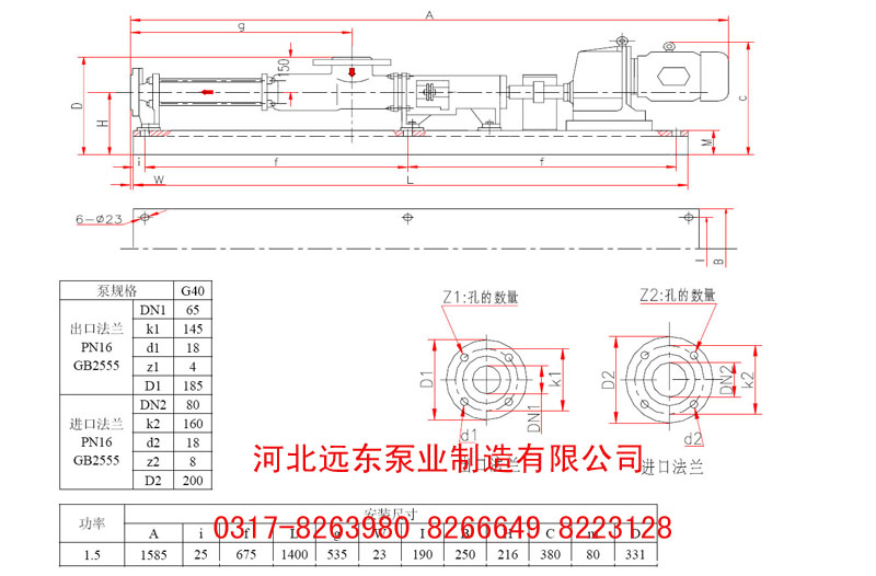 G40-1V-W101單螺桿泵配YCJ1.5KW安裝尺寸圖